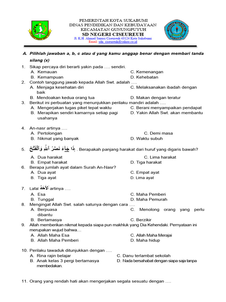 Artikel ini akan membahas secara mendalam mengenai contoh soal Penilaian Akhir Semester (PAS) untuk mata pelajaran Pendidikan Agama Islam (PAI) Kelas 1 Semester 2 berdasarkan Kurikulum 2013. Tujuannya adalah untuk memberikan gambaran yang jelas kepada guru, orang tua, dan siswa mengenai jenis-jenis soal yang mungkin dihadapi, serta untuk membantu dalam persiapan belajar agar lebih efektif dan menyenangkan.